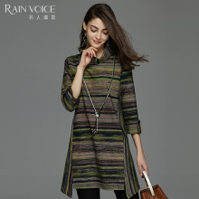 2016秋装新款女装名人瑞裳秋季裙秋冬款假两件针织大码连衣裙秋女