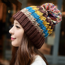 韩版超大狐狸毛球羊毛帽子拼色毛线帽子女冬天保暖针织帽皮草帽子
