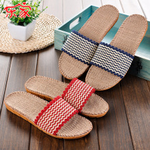 乐家亚麻拖鞋女夏季木地板麻拖鞋居家防滑厚底凉拖室内情侣家居鞋