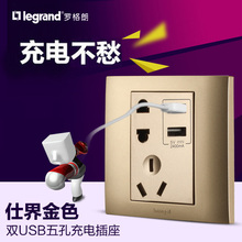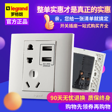TCL罗格朗开关插座86五孔双USB二三插座手机充电漫金插座面板