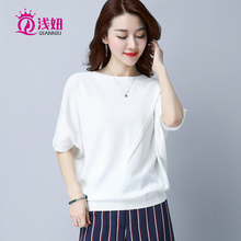 冰丝针织衫女宽松半袖夏季新款2017韩版短袖T恤女白色打底衫上衣