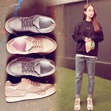 2016秋韩版运动休闲鞋女内增高旅游鞋平底厚底学生系带跑步女潮鞋
