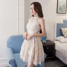 夏季露肩性感女装中长款a字裙子女夏装镂空蕾丝连衣裙挂脖礼服裙