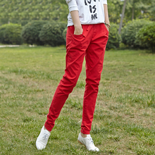 夏装韩版大码排扣小脚哈伦裤女裤修身显瘦系带休闲裤长裤子 女潮
