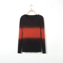 2017秋冬新款女装渐变色弹力螺纹毛衣圆领套头针织衫休闲打底上衣