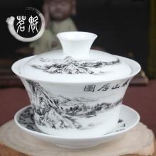 盖碗茶杯青花大号茶碗茶具陶瓷三才碗敬茶杯手抓壶白瓷玉瓷特价