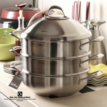 FOSSLANG30cm多功能锅三层蒸锅进口SUS304钢材电磁炉天然气通用