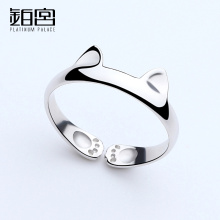 铂宫S925银猫咪戒指女可爱日韩开口萌萌哒尾戒个性银饰生日礼物