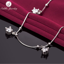 熙帝S925银镶钻石脚链女日韩版情侣脚环白金银饰品女友情人节礼物