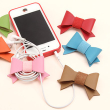 可爱蝴蝶结多功能 iphone6 4 5耳机绕线器屏幕擦数据线整理器通用