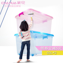 茶花透明收纳箱塑料带盖滑轮整理箱宝宝衣物被子收纳周转箱55L*2