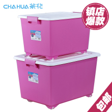 茶花收纳箱塑料储物箱滑轮整理箱收纳盒汽车大号有盖家用衣物箱子