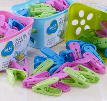 茶花强力加厚塑料防风耐用衣夹晾衣服夹子1篮24只
