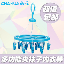 茶花晾衣架塑料晾袜架晒袜子架多夹子晾晒架带夹凉衣架内衣架圆形