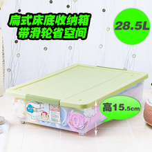 茶花床底收纳箱塑料有盖透明床底储物箱用大号整理箱扁平型带滑轮