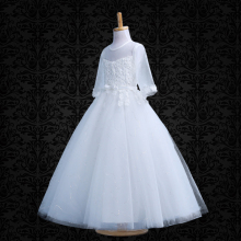儿童婚纱白色长裙公主裙女童生日蕾丝长袖演出服花童礼服女中大童