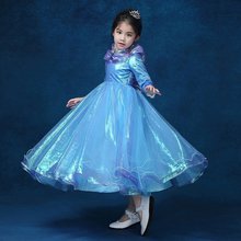 儿童演出服长袖公主裙迪士尼灰姑娘同款礼服女童婚纱晚礼服秋冬款