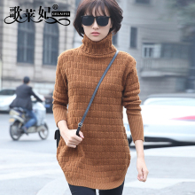 歌莱妃2017韩版秋冬新款中长款针织衫女厚款毛衣打底衫麻花半高领