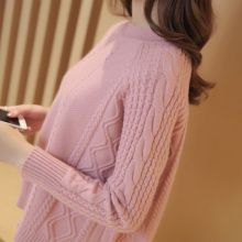 套头半高领 秋冬新款韩版女装麻花中长款针织衫加厚打底毛衣女潮