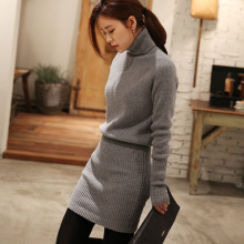 2017冬季新款韩版毛衣女长款高领长袖修身包臀裙纯色针织连衣裙