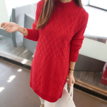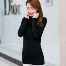 高领毛衣女中长款套头打底衫修身秋冬季新款麻花针织衫加厚线衣女