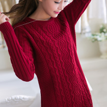 圆领打底针织衫中长款套头毛衣女秋冬装新款修身麻花长袖外套厚潮
