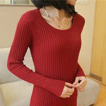 秋冬新款2017韩版长袖套头针织衫 修身加厚打底衫中长款毛衣女