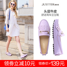JUSTTER新品荔枝纹头层牛皮女鞋别针扣女士驾车浅口豆豆鞋女1031