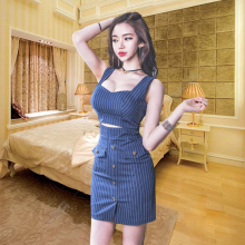 低胸连衣裙2017潮夏季新款性感镂空漏肩修身条纹包臀裙吊带短裙女