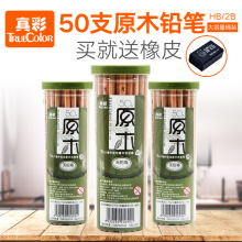 真彩铅笔50支装原木HB/2B六角三角考试绘图铅笔筒装 学生文具批发