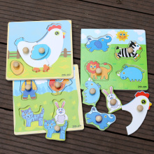 木丸子木质12片卡通拼拼乐拼图拼板 宝宝早教益智力积木木制玩具