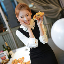 2017春装新款女装韩版大码蕾丝领长袖衬衫女白色雪纺衫衬衣上衣