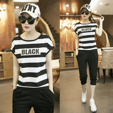俏皮休闲套装女夏装时尚潮2017新款中学生宽松短袖七分裤两件套装