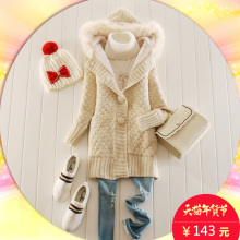 玲彩毛衣外套女加厚2016秋冬新款少女学生中长款宽松加绒毛衣开衫