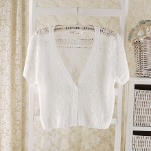 玲彩2017春夏女装短款针织衫百搭披肩开衫女薄修身短袖小坎肩外套