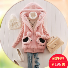 玲彩2016秋冬装新款中学生毛绒外套女韩版可爱少女加厚卫衣开衫