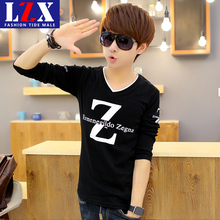 秋季青少年V领长袖T恤男韩版修身打底衫衣服潮流男装学生秋衣小衫