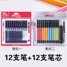 得力33229中性笔 彩杆时尚中性笔 0.5mm中性笔12支+12支笔芯