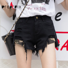 Prep&fix宽松阔腿牛仔短裤女 热裤夏季显瘦大破洞做旧洗水乞丐裤
