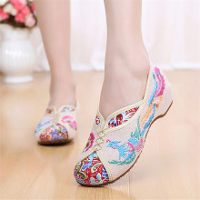 春夏款老北京布鞋民族风女布鞋坡跟凤尾绣花鞋 内增高厚底女单鞋