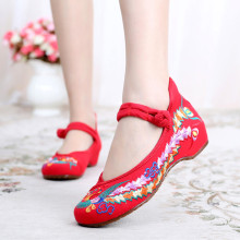 正品包邮老北京布鞋复古民族风内增高绣花鞋广场舞蹈鞋坡跟女单鞋