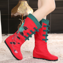 16年秋冬中筒靴老北京布鞋女靴复古民族风内增高绣花靴子单靴棉靴