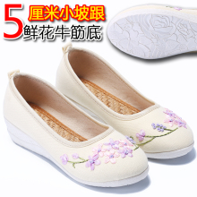新款女鞋老北京布鞋民族风绣花鞋高坡跟中国风汉服搭配单鞋牛津底