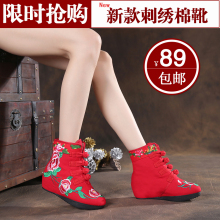 七色云彩新款春季老北京布鞋复古女鞋内增高民族风绣花鞋包邮