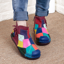 纳妮雅春秋季新款真皮彩色短靴手工女鞋圆头坡跟休闲鞋复古女靴子