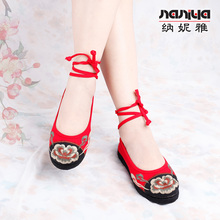 纳妮雅民族女鞋真皮绣花鞋内增高文艺中国风百搭刺绣旗袍鞋子高跟