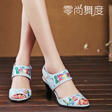 零尚舞度新款中国风复古民族风女鞋绣花鞋配旗袍高跟鞋女鱼嘴凉鞋