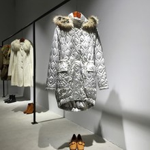 清仓忑价伊H*2016冬装高端 女装欧洲站正品剪标貉子毛中长款棉服