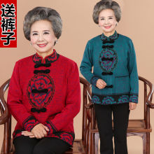 新款中老年女装棉衣金丝绒孔雀绣花高档妈妈装唐装棉袄奶奶装上衣