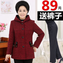 妈妈装秋冬装毛呢厚外套中长款中老年女装呢子上衣奶奶装连帽风衣